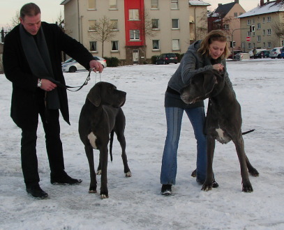 03.02.2010 Bruna traf am 31.01.2009 auf der Ausstellung in Limburg ihren Großvater Festus von Himmelkron. Die Freude war riesig, diesen Multi-Champion, der mittlerweile schon 9 Jahre alt ist, in solch einer guten Kondition zu sehen. Bruna und Festus erhielten mit dem